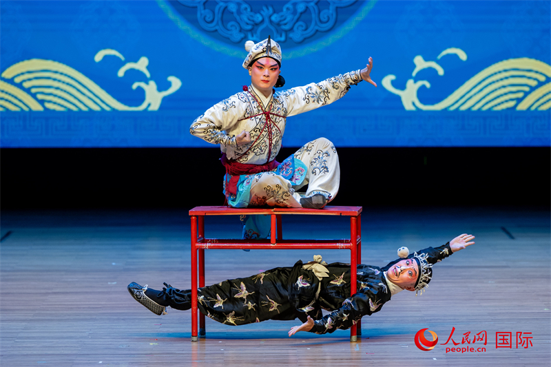 浙江婺剧团艺术家表演《三岔口》。人民网记者 谢佳君摄