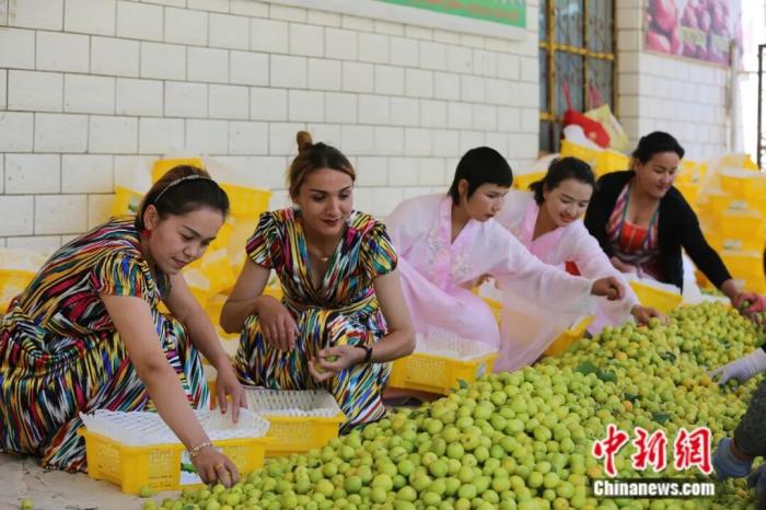 库车市小白杏丰收,百姓采摘。库车市融媒体中心供图