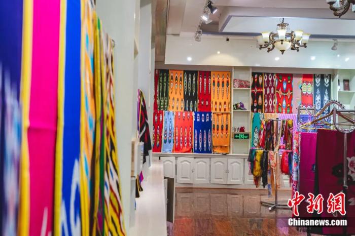 艾德莱斯绸受到游客喜爱。许晓龙 摄
