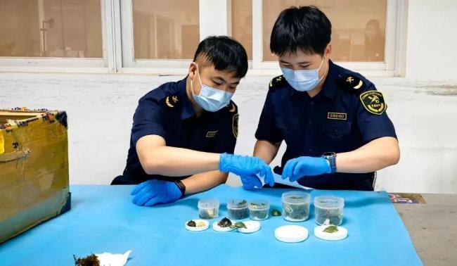 广州白云机场海关关员在对一票申报为“塑料马桶座圈套”的出境快件进行监管时,发现该快件内部填充了大量棉花,棉花包裹着5个圆柱形塑料盒,盒内均装有活体乌龟,共计52只。这些乌龟品种不一,颜色各异,主要以绿色乌龟为主,还有少量褐色和黄色乌龟。经技术机构鉴定,确认这些乌龟中包括彩龟48只、斑点池龟2只、麝香龟2只。斑点池龟和麝香龟均属于《濒危野生动植物种国际贸易公约》(CITES)附录列明的保护物种。