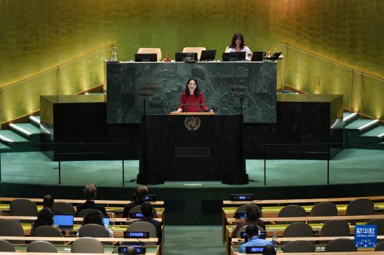 9月29日,在位于纽约的联合国总部,第80届联大主席贝尔伯克在发表联合国大会一般性辩论闭幕致辞。新华社记者吴晓凌摄