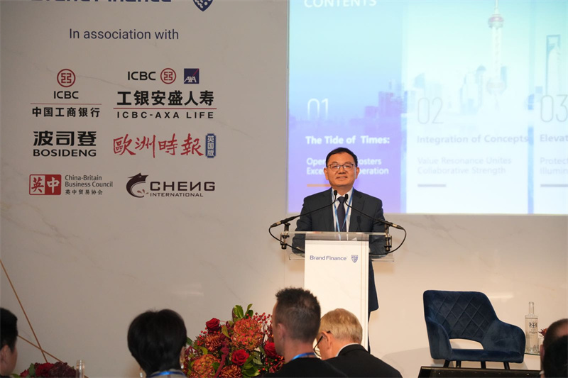 “品牌金融”董事长兼首席执行官大卫·海格发表致辞。主办方供图