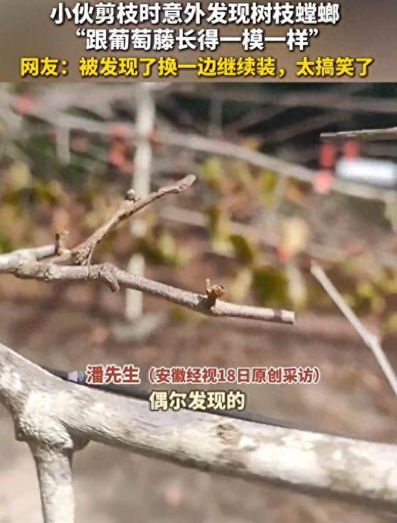 近日,一段关于螳螂伪装成树枝的视频在网络上引起了广泛关注。广东一位男子在修剪树枝时意外发现了一只极其逼真的螳螂。被发现后,这只螳螂迅速调整姿势继续伪装。