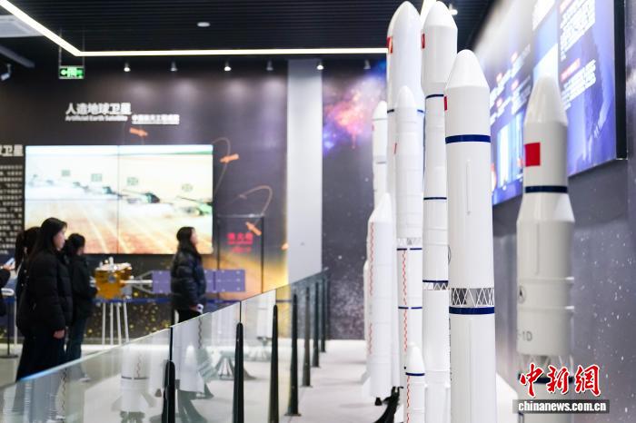 11月5日,黑龙江哈尔滨,长征系列运载火箭模型吸引观众观看。中新社记者 赵宇航 摄