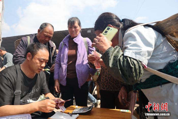 3月11日,在四川省雅安市名山区双河鲜叶交易市场和红星镇鲜叶交易市场内,随着正式开市,市场内人头攒动,呈现出购销两旺的场景。中新社记者 张浪 摄
