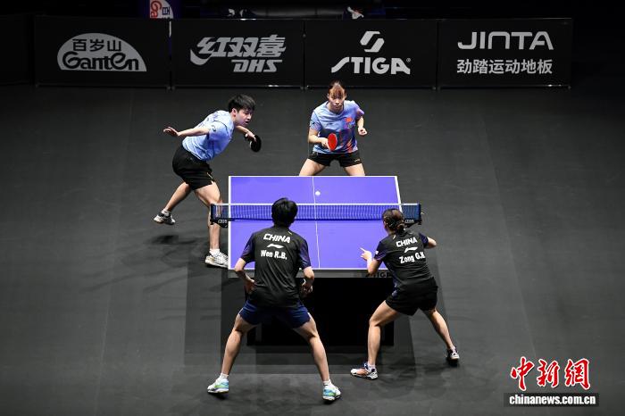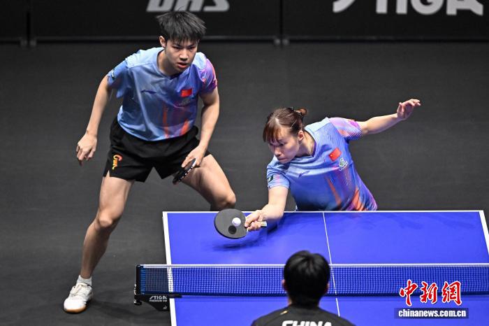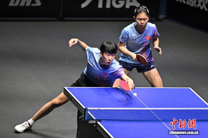 4月9日,2026年世界乒乓球职业大联盟(WTT)常规挑战赛太原站正赛在太原市滨河体育中心体育馆开赛,来自19个国家和地区的近百名选手向400点世界排名积分发起挑战。图为中国选手黄友政(左)/石洵瑶在比赛中。中新社记者 韦亮 摄