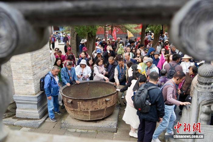 图为游客参观少林寺明代大铁锅。中新社记者 范晓恒 摄