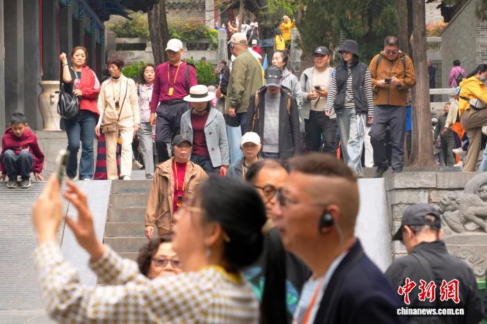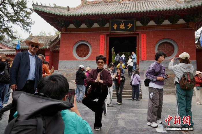 图为中外游客在少林寺参观。中新社记者 李超庆 摄