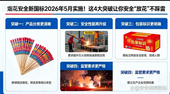 首先,整合归并。过去企业需要对照多份标准文件,执行极为不便,监管也缺乏统一依据。新规将烟花爆竹产品的分类、分级、安全要求、包装标志等内容统一纳入单一标准,提供了更细致的分级分类标准与检验检测依据,显著提升安全监管效能。