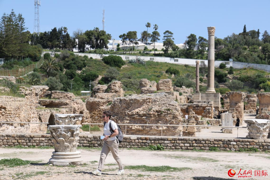 游客在世界文化遗产——突尼斯迦太基考古遗址游览。人民网记者 张志文摄