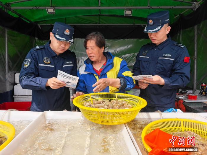 中新网济南4月30日电 (赵庭阳 孙婷婷)5月1日12时起,北纬35度以北的渤海和黄海海域渔业辅助船与捕捞船将同步休渔,新修订的《中华人民共和国渔业法》(以下简称《渔业法》)也将于5月1日正式施行,进一步筑牢黄渤海海域安全屏障,织密伏季休渔“安全网”。连日来,中国海警局北海分局各级海警局深入辖区驻地渔港码头、海滨景区等地开展伏季休渔暨新修订《渔业法》专项普法巡查活动。