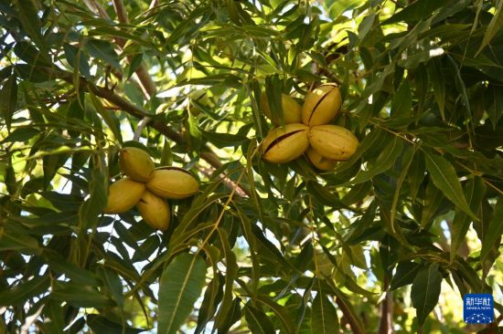 这是4月24日在南非西开普省帕尔地区的博文兰德农场拍摄的碧根果果实。新华社记者 邓冰雪 摄