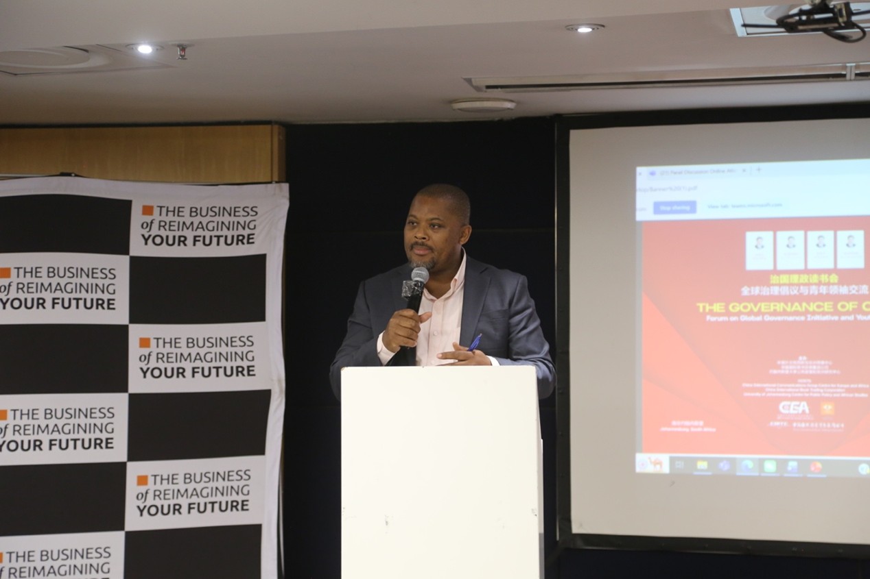 人民网约翰内斯堡11月1日电(记者杨讴、戴楷然)日前,由中国外文局西欧与非洲传播中心、中国国际图书贸易集团公司和南非约翰内斯堡大学公共政策和非洲研究中心共同主办的“治国理政读书会:全球治理倡议与青年领