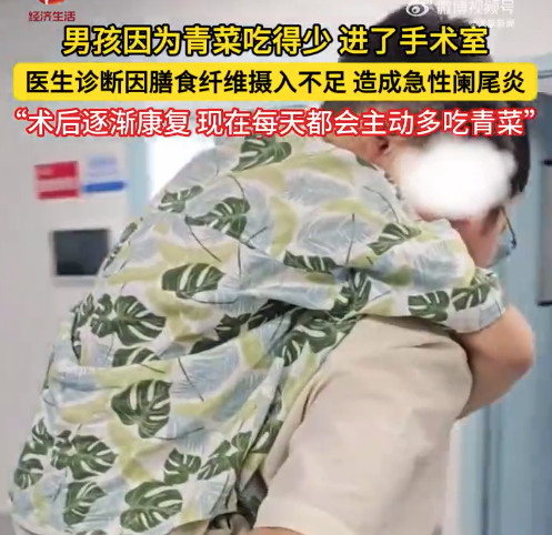 10月12日,江西抚州。男孩因为青菜吃得少,进了手术室。医生诊断因膳食纤维摄入不足,引发急性阑尾炎!...