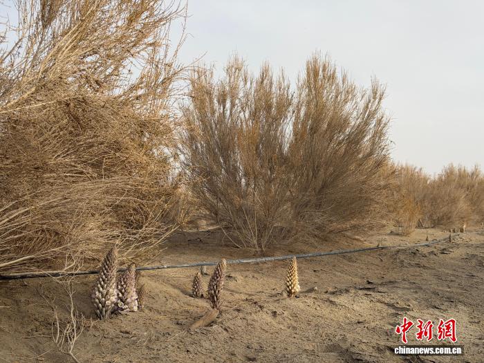 中新网新疆沙雅4月14日电 (张家伟)在新疆沙雅县盖孜库木乡的茫茫沙地上,梭梭、柽柳、四翅滨藜等沙生植物共生共长。
