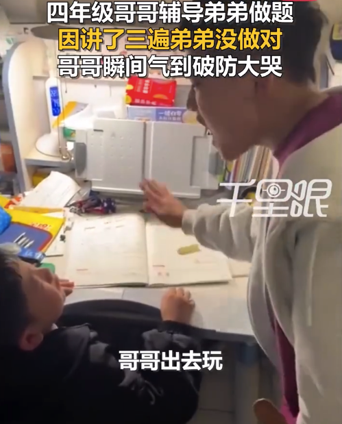10月22日,河北沧州。四年级哥哥辅导三年级弟弟做题,讲好几遍弟弟都没懂,哥哥被气得大哭。妈妈刘女士称,开始是自己讲了好几遍崩溃了,晚饭也没做,哥哥出去玩回来饿了,主动说他来辅导,让妈妈去做饭,但弟弟还是坚持自己的想法,哥哥就被气哭了。...