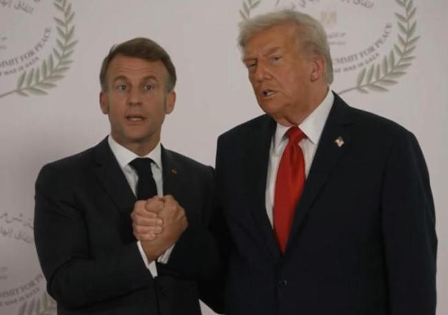 美国总统特朗普与法国总统马克龙于10月13日在埃及会面。会面期间,特朗普用力握住马克龙的手,两人互相拉扯手臂并多次变换握法,整个握手过程持续了26秒。英国《独立报》形容这次握手为“掰腕式握手”,并称特朗普“锁死”了马克龙26秒