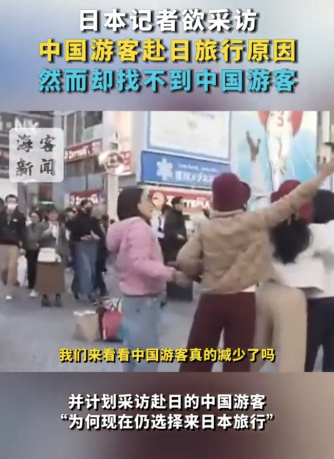 日本记者街头采访找不到中国游客。12月,中日外交关系紧张导致中国赴日游客锐减,大阪、京都等地商家出现明显分化。章鱼烧店中国顾客减半!不少在日本的中国网友发短视频,表示近期当地中国游客明显减少。11月25日,记者采访了在日本从事导游工作的王先...