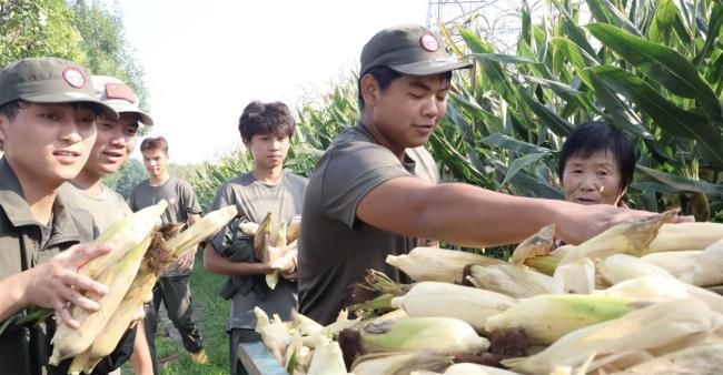 • 高校军训拉练偶遇农忙大爷 学生帮大爷剥了一车玉米