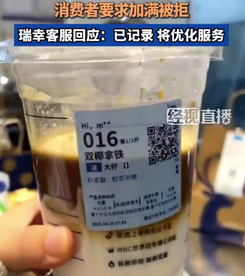 • 瑞幸拿铁去冰仅半杯要求加满遭拒 瑞幸回应