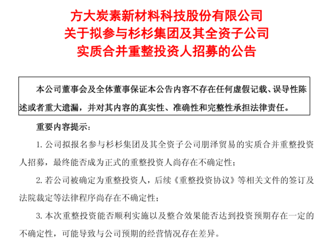 39亿元年营收的方大炭素重整188亿元年营收的杉杉集团,其所中意的核心资产应当是目前280亿元市值的杉杉股份实控权。