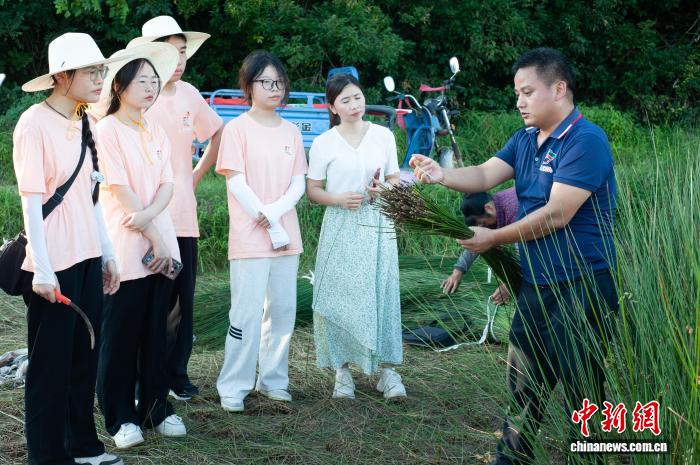 中新网抚州10月15日电 (黄纯 吴殷蕾 曾子玥)15日一大早,随着一声脆响,江西省抚州市临川区灯芯草交易市场准时开市。挑着翠绿灯芯草的村民有序入场,40名草业经纪人也俯身“扎”进草堆,在晨雾与草香中忙碌起来。而点