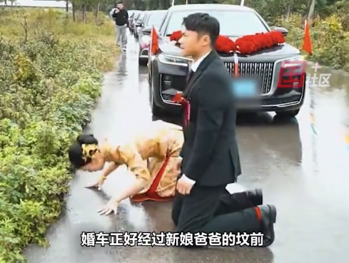 10月22日江苏徐州,一位新娘出嫁,婚车正好经过新娘爸爸的坟前,新娘带着新郎冒雨下车跪拜:我走了爸爸。摄影师:此情此景太触动人了,当时心里特别难受,心疼新娘。...