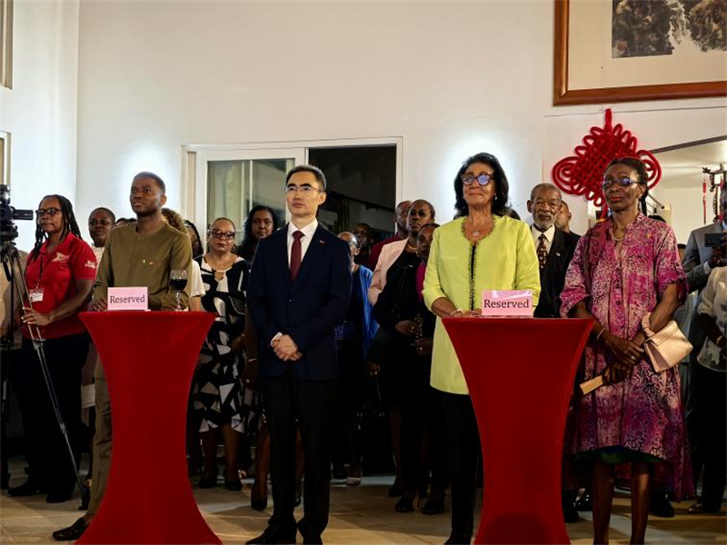 人民网里约热内卢9月23日电(记者时元皓)圣乔治消息:当地时间9月22日,中国驻格林纳达大使馆举办庆祝中华人民共和国成立76周年、中国人民抗日战争胜利80周年暨杨舒大使到任招待会。格总督拉格雷纳德、总