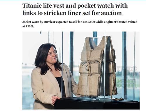 泰坦尼克号幸存者的一件救生衣即将被拍卖。114年前,这艘豪华游轮在首航中不幸沉没,成为人类历史上的巨大悲剧。这件救生衣属于当时22岁的一等舱乘客劳拉·梅布尔·弗兰卡泰利,在那次灾难中挽救了她的生命